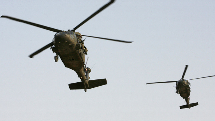 Helicópteros estadounidenses en su base militar en Bagdad, Irak