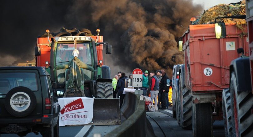 Francia vivía una enésima protesta de sus agricultores y ganaderos. Ciudades y puerto bloqueados, carreteras cortadas por tractores y columnas de humo negro producido por la quema de neumáticos.