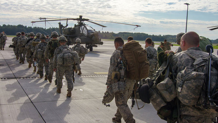 El secretario adjunto de Defensa de EEUU, Robert Work, confirmó en abril las intenciones de la OTAN de desplegar 4.000 hombres en las fronteras de Europa del Este con Rusia. Alemania, el Reino Unido y Estados Unidos ya han colaborado cada uno con 1.000 hombres, pero los demás países europeos de la organización no han dado hasta ahora muestras de querer enviar a sus tropas a esa región, afirmó el autor.