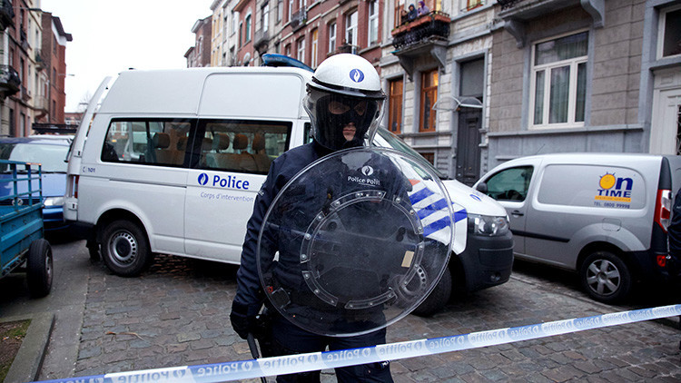 Un policía monta guardia tras fijar un perímetro de seguridad en el barrio de Molenbeek (Bruselas)