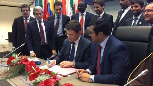 Más tarde, el 3 de diciembre, 11 países no OPEP se comprometieron a sacar del mercado 558 mil barriles diarios, para llegar a un recorte petrolero global de 1 millón 758 mil barriles diarios.