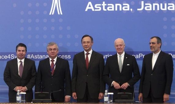 Los días 23 y 24 de enero se realizó en Astaná un encuentro con representantes del Gobierno de Siria, la oposición armada, diplomáticos de Rusia, Turquía, Irán, Kazajistán, Estados Unidos (EE.UU.) y la Organización de las Naciones Unidas (ONU) a puertas cerradas para consolidar la tregua vigente en Siria desde el 30 de diciembre de 2016.