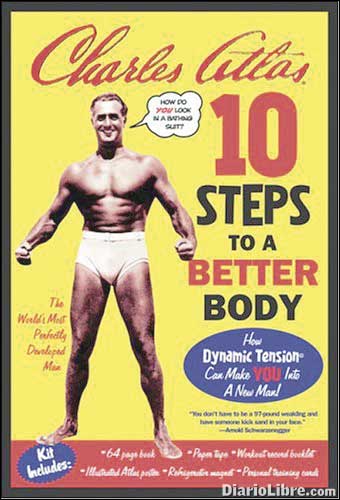 Charles Atlas y su método de tensión dinámica que se promovía en la contraportada de los «paquitos» impresos en México -comprados semanalmente en la Librería Amengual y en la Quisqueya, de Chichí, en la 30 de Marzo- brindaba una opción económica y casera de ejercicios, cuya rutina realizaba antes de la ducha, a veces en el baño mismo. Su cuerpo bronceado y atlético, con el antes y después, exhortaba a los alfeñiques a dejar de serlo y seguirlo a él por una senda que garantizaba el éxito con las mujeres. Lo otro eran las pesas. Billy Gutiérrez fue mi primer instructor, en el gimnasio de patio que tenía en la Galván, dotado de barras, argollas, banca para realizar press, tabla de flexión, poleas, pesas de cemento y de hierro. Un instructor fenomenal el querido amigo Billy, con su cuerpo hercúleo flexible, karateca por demás y solidario. Un good-looking que encandilaba a las damas en las fiestecitas.