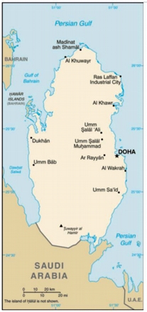 En medio de este escenario, Catar, con su capital Doha, que proclamó su independencia el 1 de septiembre de 1971, situado en una península de la costa Sur del golfo Pérsico, donde el eje de su economía lo conforman el petróleo y el gas natural (tercera mayor reserva del mundo). Su principal puerto para exportación es Umm Sa-id- la única frontera terrestre de Catar colinda con Arabia Saudita-, es el país de mayor renta per capital del planeta, donde sus ciudadanos no pagan impuestos y es socio comercial-algunos a gran escala- de países como Francia y España, los del golfo, Turquía y Rusia.
