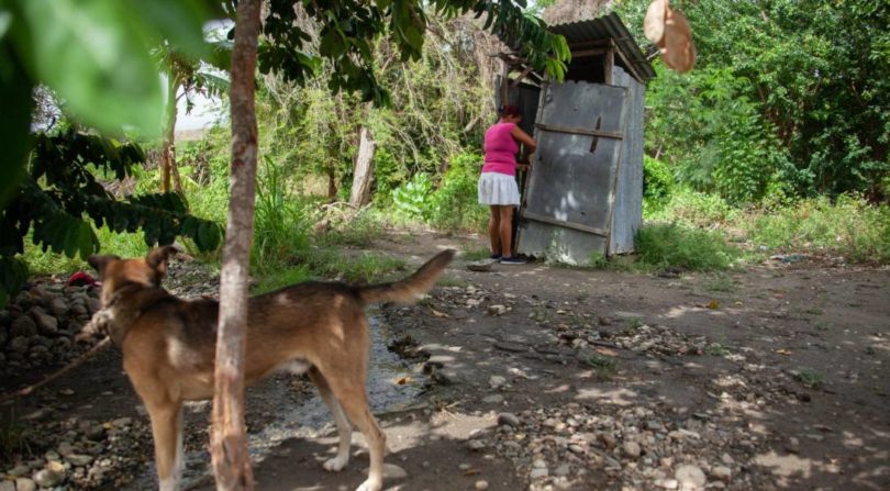 En su patio, en el interior de una caseta de zinc, hay una taza de inodoro sin tanque para almacenar agua. Las heces y la orina caen al vacío. Un tubo en el exterior que sale a la superficie libera el hedor. Es la segunda letrina que la familia levanta para el uso de todos en las dos décadas que lleva residiendo en el lugar. En 2012 se clausuró la vieja y sellaron el hoyo de 18 pies de profundidad porque se llenó. Una fundación católica le ayudó a construir la de ahora. Al esposo de Florián, de 65 años, le tomó como tres días cavar los 22 pies de la nueva.