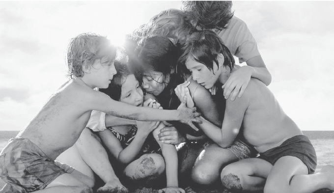Una escena impactante ocurre casi al final del filme, cuando se encuentran en la playa, y Sofía deja al cuidado a dos de sus hijos con Cleo para que los cuide. En un momento de angustia, en el cual podríamos pensar lo peor, toda la familia se abraza junto con Cleo, porque cuando una empleada de la casa pasa tanto tiempo en ella, deviene a ser como un miembro más de la familia, donde los sentimientos llegan a conjugarse.