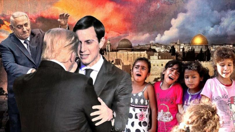 Estados Unidos, bajo mandato del lobby sionista, avalados por los sectores más reaccionarios de la sociedad estadounidense, han decidido que Palestina no existe y para ello le entrega a Israel, como un presente chorreante de sangre palestina un plan cuyo destino es impedir cualquier intento de descolonizar las tierras de Palestina, sacar al ocupante sionista e impedir, por tanto, todo derecho a la conformación de un estado autodeterminado, libre y soberano. Un plan que los medios de información afines a la alianza entre la ultraderecha estadounidense y el sionismo israelí denomina el “Acuerdo del Siglo” y para eso ha generado los apoyos y sometimientos de gobiernos regionales, en un cuadro regional donde además genera tensiones contra el Movimiento de Resistencia Islámica de El Líbano (Hezbolá) provoca permanentemente a la República Islámica de Irán mediante la imposición de más sanciones y medidas destinadas a afectar a la nación persa. Apoya a Israel en seguir sionizando los altos del Golán ocupado tras la guerra de junio del año 1967 y sobre todo amenaza a diestra y siniestra a todo aquel que se atreve a levantar la voz contra los atropellos cometidos contra el pueblo palestino.