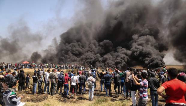 La segunda iniciativa popular ha sido una protesta masiva semanal, en gran parte no violenta, llamada la Gran Marcha del Retorno, cerca de la valla perimetral. El título pretende recordar a los observadores que a la mayoría de los palestinos en Gaza se les niega el derecho a regresar a los cientos de aldeas de las que Israel expulsó a sus familias en 1948 y que ahora se encuentran al otro lado de la valla. Decenas de miles de manifestantes desafían regularmente las restricciones israelíes que han declarado cientos de metros de la tierra de Gaza dentro de la cerca como una «zona prohibida».