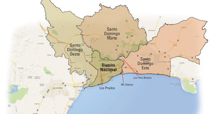 En Santo Domingo Este, Los Tres Brazos, también próximo al río Ozama, quedó dentro de los lugares más vulnerables para residir de cara a un evento sísmico. Sin embargo, el resto de este municipio -un 60%- está comprendido de rocas calizas, resistentes a seísmos.