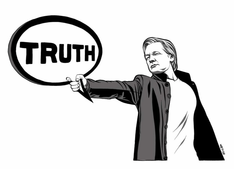 Julian sacó a la luz la verdad. La desveló una y otra y otra vez, hasta que no quedó la menor duda de la ilegalidad, corrupción y mendacidad endémicas que definen a la élite gobernante global. Y por descubrir esas verdades es por lo que han perseguido a Assange, como han perseguido a todos aquellos que se atrevieron a rasgar el velo que cubre al poder. “La Rosa Roja ahora también ha desaparecido…”, escribió Bertolt Bretch cuando la socialista alemana Rosa Luxemburgo fue asesinada. “Porque ella a los pobres la verdad ha dicho, los ricos del mundo la han extinguido”.