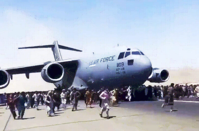 Mientras tanto, en el Pentágono, ante la prensa, el general Kenneth F. McKenzie, un veterano de las sangrientas campañas en Iraq y Afganistán, jefe del United States Central Command (USCENTCOM), Comando Central estadounidense, intentaba dar la impresión de que su país no abandonará a todos aquellos colaboracionistas con la ocupación estadounidense que se han quedado atrás, varados en un país en manos del talibán. Y el jefe del Pentágono, el general Lloyd Austin, declaraba su orgullo por la misión, aunque no podía esconder la evidencia de la humillación. Dejaban atrás un Afganistán donde no solo vuelven a gobernar aquellos que Estados Unidos desalojó veinte años atrás, sino que ni siquiera han conseguido desmantelar las bases del terrorismo islamista, objetivo que sirvió de pretexto para la invasión. Porque la invasión de Afganistán no fue soviética, sino estadounidense: la URSS había firmado un tratado con el gobierno revolucionario afgano de Najibulá, y acudió a su solicitud de ayuda. En la conmoción de los atentados del 11 de septiembre de 2001, Estados Unidos entró a sangre y fuego en el país unas semanas después, armado de la seguridad de su enorme poder militar y de la avidez del programa neocon (Project for the New American Century que agrupó a los Bush, Cheney, Wolfowitz, Rumsfeld, Perle y otros). Pero los planes definidos por los neocon eran demasiado ambiciosos.