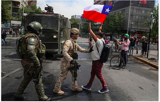 A partir de abril de 2021, el levantamiento social en Colombia ha sido enfrentado con un repertorio represivo que, habiendo sido puesto en práctica en otros momentos contra las distintas luchas sectoriales de Colombia, se ha adaptado y perfeccionado en este momento. Destaca la incorporación de mecanismos de intervención de la señal inalámbrica de internet o de los cortes al suministro de energía eléctrica como represalia contra zonas de las ciudades en las que se han llevado a cabo las movilizaciones. Como ha pasado en Chile durante los últimos años, la actuación del ESMAD replica las técnicas de pavor consistentes en disparar de manera directa a la cabeza de las y los manifestantes, lo que ha redundado en traumas oculares graves y la pérdida parcial o total de la vista. De manera clara también exhibe el tratamiento bélico que el Estado colombiano emplea contra las expresiones de descontento social.