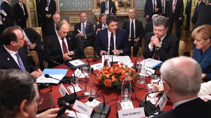 - La formación en junio de 2014 del Cuarteto de Normandía, grupo conformado por los líderes de Rusia, Alemania, Ucrania y Francia que, bajo sus repetidas reuniones, buscan llegar a un alto al fuego en la región de Dombás. La reunión tuvo lugar en Benouville, en la misma región de Francia donde los aliados de Normandía desembarcaron en 1944. Entonces las conversaciones se llamaron también el «Formato de Normandía».