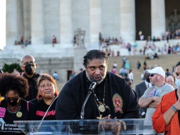 El reverendo William Barber durante su discurso en la Marcha Moral el fin de semana, en Washington. La Campaña de los Pobres en Estados Unidos ha declarado que hay un problema moral en el país, el cual ha generado injusticia social, racismo, guerras y devastación ecológica, y por ello se requiere una revolución de valores, receta recomendada por el reverendo Martin Luther King, en 1968