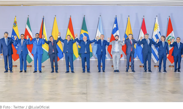 La invitación del presidente Luis Inacio Lula Da Silva fue un éxito: llegaron al Palacio de Itamaraty, la sede de la cancillería en Brasilia, los presidentes de Argentina, Chile, Paraguay, Uruguay, Ecuador, Bolivia, Colombia, Venezuela, Surinam y Guyana, más el jefe del Consejo de Ministros del cuestionado gobierno del Perú.