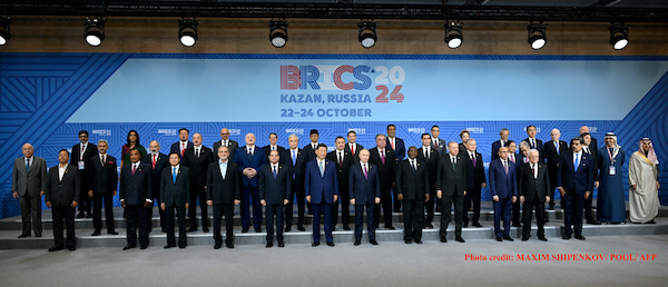 En esos contextos internacionales, donde la geopolítica acelera las acciones hegemónicas y contrahegemónicas, se conformó en 2010 el grupo de países BRICS (Brasil, Rusia, India, China y Sudáfrica) como espacio de convergencia entre países que han decidido potenciar el mundo multipolar. En enero de 2024 se incorporaron Irán, Egipto, Etiopía, Emiratos Árabes Unidos y Arabia Saudí; y en la reciente cumbre de Kazán en Rusia (22-24/octubre/2024) son 34 los países que plantearon su incorporación: Argelia, Azerbaiyán, Bahréin, Bangladesh, Bielorrusia, Bolivia, Cuba, Chad, República del Congo, Guinea Ecuatorial, Eritrea, Honduras, Indonesia, Kazajstán, Kuwait, Laos, Malasia, Myanmar, Marruecos, Nicaragua, Nigeria, Pakistán, Senegal, Sudán del Sur, Sri Lanka, Estado de Palestina, Siria, Tailandia, Turquía, Uganda, Uzbekistán, Venezuela, Vietnam y Zimbabue. Fueron aceptados como nuevos socios 13 países y están en consideración los restantes.