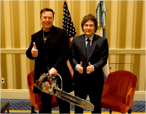 Algo de esto se aplica a Milei y sus secuaces. Milei es funcional a la clase capitalista –en tanto aplica el ajuste, baja los salarios de estatales y jubilaciones, facilita la precarización del trabajo, hace la apología del individualismo, etcétera- pero mantiene una relación de tensión con muchas posturas que se consideran más o menos normales, a aceptables, en el establishment. Por ejemplo, cuando Milei anuncia que Argentina se retirará del Acuerdo de París contra el cambio climático (suscrito por Macri y por 196 países), no necesariamente está expresando los intereses del capital “en general”. Algo similar puede decirse sobre el abandono de Argentina de la Organización Mundial de la Salud; de los ataques a los homosexuales; de la propuesta de borrar la figura jurídica del femicidio; de la propuesta (hoy borrada) de cerrar el Banco Central; de la venta de puestos en las boletas electorales; del pago de coimas para acceder a Milei, para mencionar algunos ejemplos significativos.