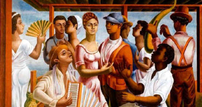 Retornando a la fiesta de pueblo dibujada por nuestro autor, toca el turno a la descripción del conjunto musical. “La orquesta a cuyo son bailaban las damas más encopetadas de Santo Domingo se componía de un bombo, un clarinete, unos tambores o timbales y un ‘güiro’; solían agregar algún que otro instrumento de metal, aumentando así la estruendosa algarabía de aquella música inverosímil e intolerable no sólo para los oídos menos sensibles, sino también para los nervios más tranquilos”. Reacción a todas luces de rechazo a lo que sonaba en los oídos de López Morillo, probablemente sesgada por el filtro cultural, pero quizá evidencia temprana del patrón de reventar el tímpano con la música que todavía prevalece en las fiestas dominicanas de hoy. Que hace imposible hablar con quien se halla al lado y obliga al lenguaje de señas.